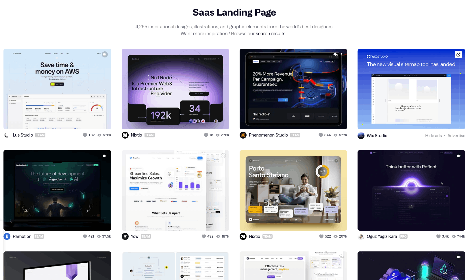 No designer is a stranger to Dribbble, and its "saas landing page" tag is brimming with fresh and creative concepts. You’ll find everything from polished mockups of full layouts to tiny, clever UI elements from designers all over the world.